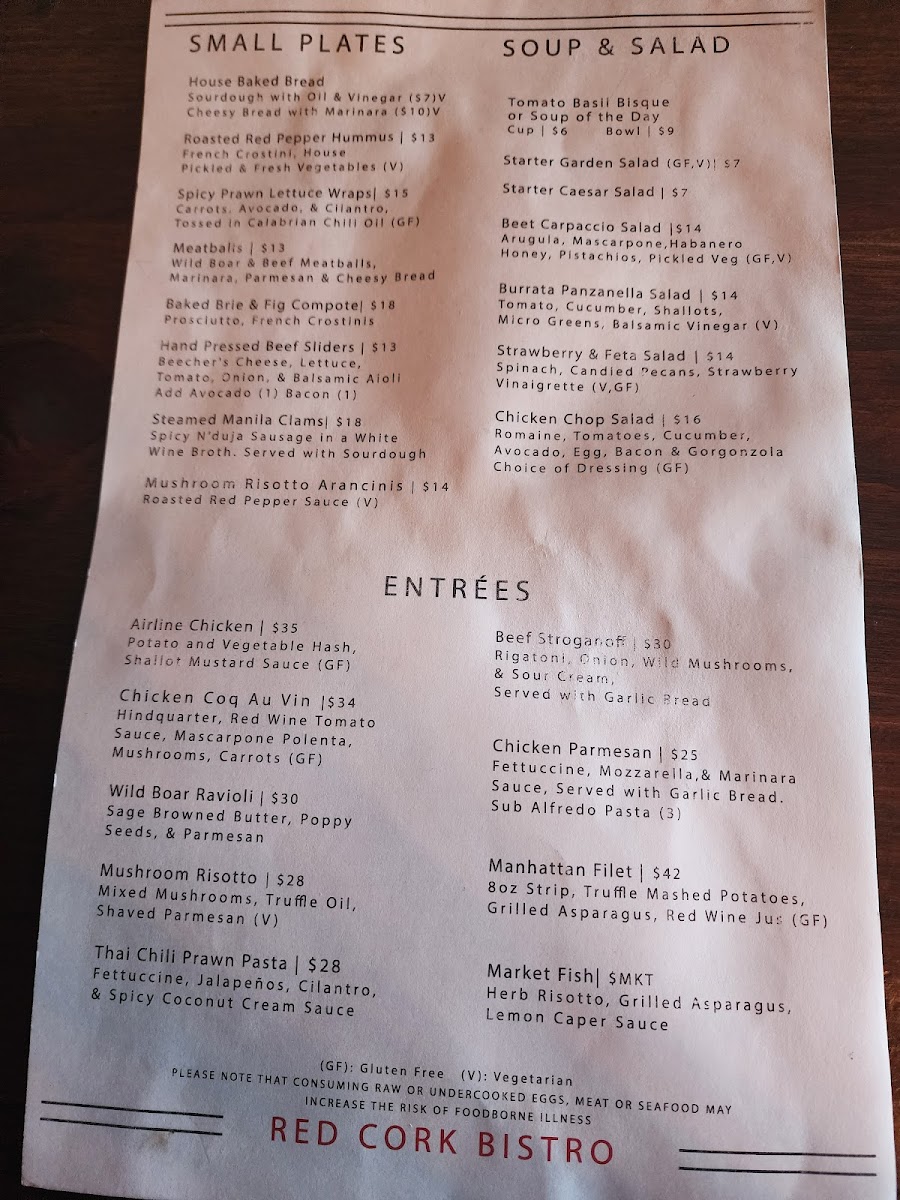 Welcome to Red Cork Bistro & Catering, a delightful culinary destination nestled in Mukilteo, WA. This charming bistro offers a menu that celebrates the art of fresh, bold flavors and artisanal ingredients. Start off with their House Baked Sourdough served with creamy pesto butter, or indulge in their rich Poblano Corn Chowder. For lunch, the BLTA Sandwich is a must-try, featuring a perfect blend of bacon, avocado, and chive mayo.